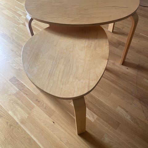 Ene bordet har en liten bulk i bordplaten som vist, mens det andre ser ut til å være uten noen merker.