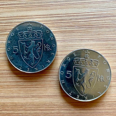 5 krone fra 1975, Veien mot vest.