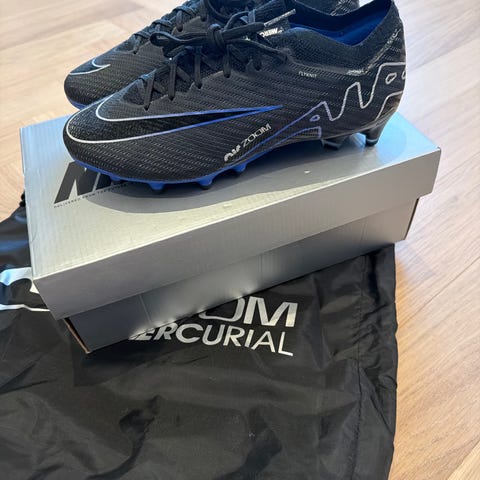 Nike Phantom GX Elite FG fotballsko str 40 i svart og blå farge. Modellen er designet for bruk på gressbaner med faste knotter (FG) og har yttersåle med mange knotter for godt grep på naturgress. Overdelen har strukturert materiale for bedre ballkontroll, og skoene har tradisjonell snøring for justerbar passform. Innside i kontrastfarge blå.