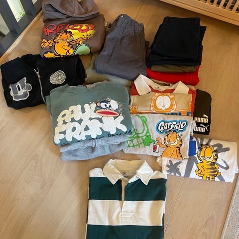 Fin klespakke i størrelse 134 / ca. 9 år. Klærne er pent brukt og passer fint til både hverdag og sommerdager.