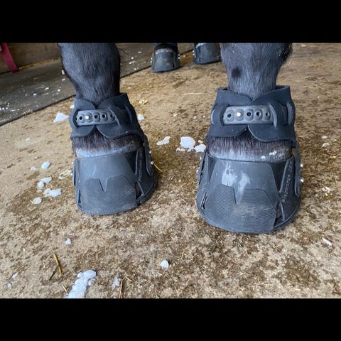 Flex boots (par) selges grunnet at jeg ikke har hest dem passer til lengre. Lettvinde og gode boots! Følger med røde back strap og neoprene gaitere (svarte).