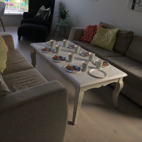 Stødig rustikk salongbord selges, svart stålramme og unikt treplate på toppen. Liten skade på ene hjørnet.