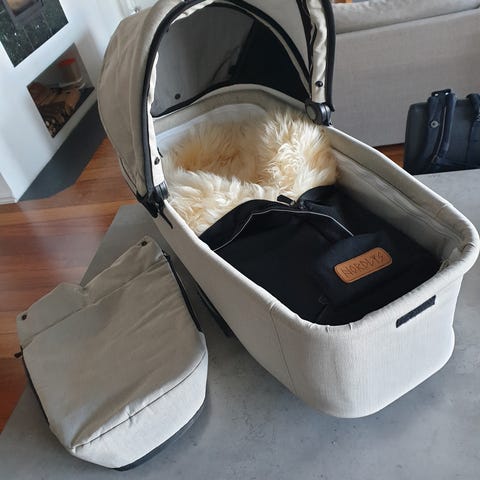 Emmaljunga liggedel i mørk grå/svart tekstil. Den har justerbar kalesje og liggedel som gir god beskyttelse mot vær og vind.