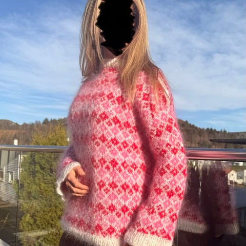 Nystrikket Cortina genser i terracotta og beige farge. Str S/M.