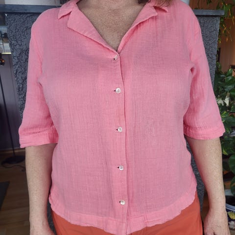 Bluse/topp/skjorte i klassisk stil (0039 Italy), str. XS; veldig fin stand:) ingen flekker eller skader; 100% lin; fin ren rosa farge:)