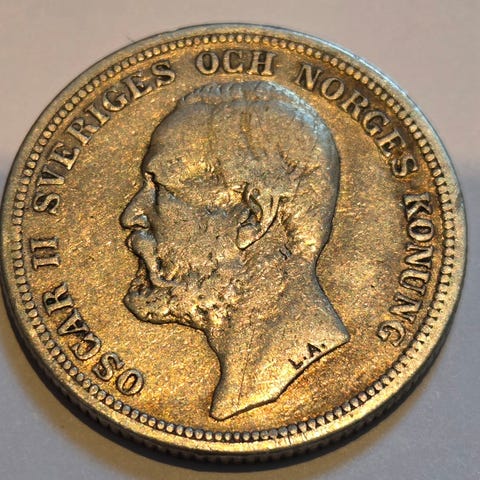 Ekte norsk mynt fra unionstiden (Oscar II).
