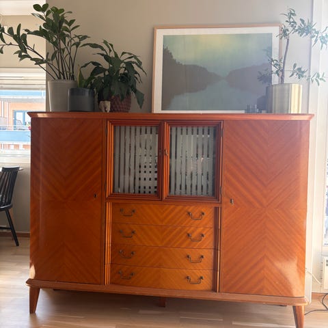 Selger en nydelig Retro skjenk fra 1960 tallet for kr 4500,- Den er meget pent brukt , og har minimalt med bruksmerker , ser nesten ubrukt ut . Den har vært eid av en barnløs eldre dame fra den var ny og fram til i fjor da jeg arvet den .