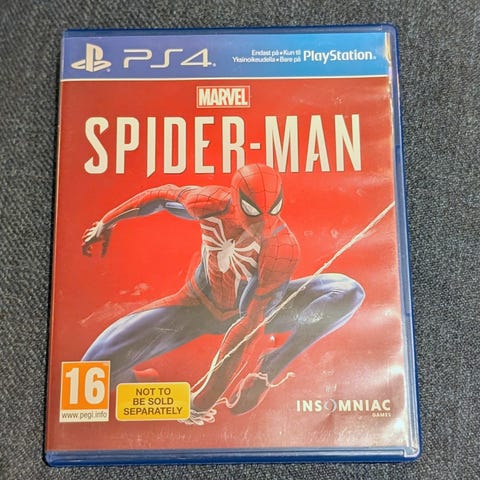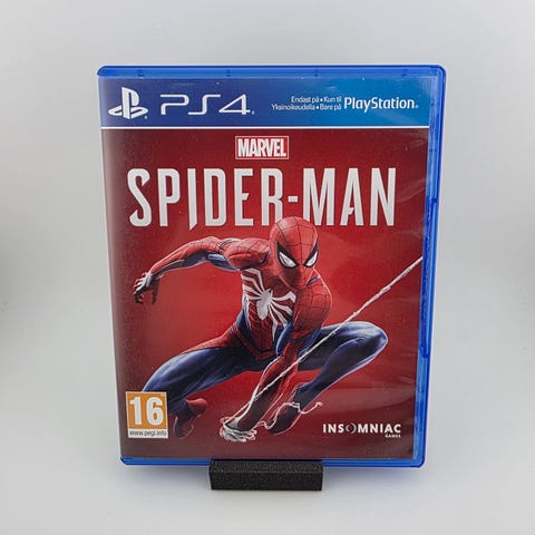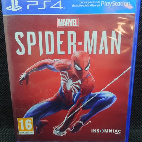 Sony Marvel’s Spider-Man Playstation 4 spill. Actioneventyrspill der spilleren styrer Spider-Man i et åpent New York-miljø. Fysisk utgave på Blu-ray-plate i original PS4-eske. Aldersgrense 16 år ifølge PEGI-merking på omslaget. Spill for én spiller med støtte for trofeer og lagring på harddisk. Egnet for Playstation 4-konsoller som støtter fysiske PS4-spill.