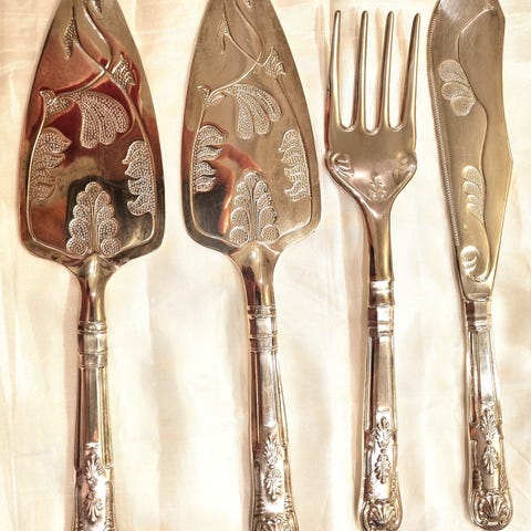 Stort og vakkert sølvplett fat med håndtak