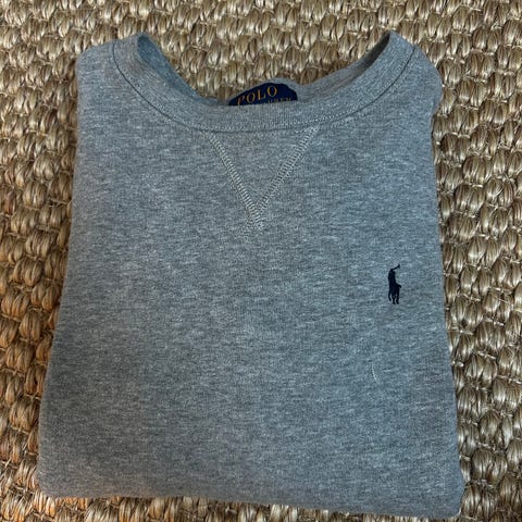 Polo Ralph Lauren genser for gutt i størrelse 164. Genseren er grå og laget av bomull. Den har rund hals og lange ermer, med ribbekanter nederst og ved ermelinningene. Diskré logo er brodert på brystet.