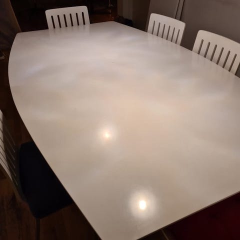 Selger spisebord med 8 stoler og ekstra plate for å utvide bordet med 2 plasser til. Selges grunnet flytting