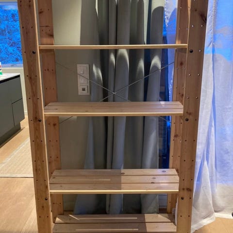 2 stk trehyller fra IKEA. De fungerer fint til lagring. Står fint med ting inni, men kan oppleves noe «lealaus» når de er tomme. Har vært brukt i kjeller til kasser etc. Fu