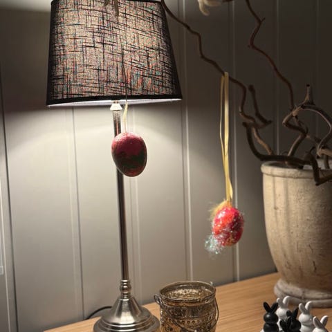 Ny populær bordlampe i beige strå, selges grunnet plassmangel 🫠