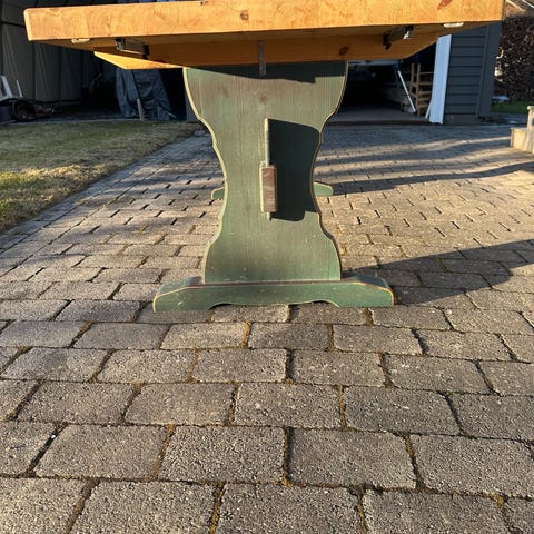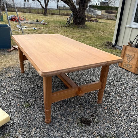 Solid brukt furubord selges som det står. Kan demonteres før henting. Kjøper må hente.
