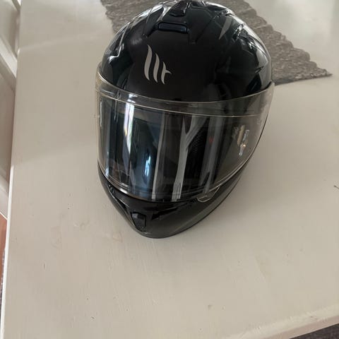 Course integralhjelm i størrelse XS. Hjelmen har hel front med klart visir og matt svart overflate. Innvendig polstring og justerbar hakereim med hurtigspenne. Egnet som motorsykkel- eller mopedhjelm der integralutforming ønskes for full dekning av hode og ansikt.