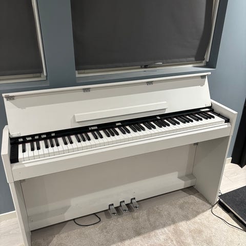 Yamaha Arius YDP-S51WH (hvit) er et slankt digitalpiano designet for å gi en realistisk pianofølelse i et kompakt møbel.
