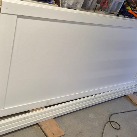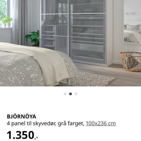 Skytta Mehamn skyvedørskombinasjon med 3 spor. Målt til 2 x 2 m slik den står nå. Den er målt 2 m fra skinne og ned til gulvet (uten det røde skraverte området). Kan forlenges med ekstra deler fra Ikea. Er også «justerbar» i høyden. Ikea selger en Skytta takhøydereduserer for 3 spor som gjør ar du kan ha ulik høyde.