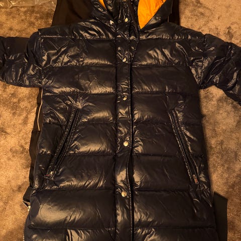 En sort, med gull detaljer i glidelås og knapper. God og varm.