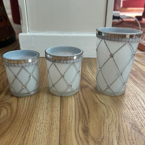 14 store og 15 små telysholdere i sotet grå.