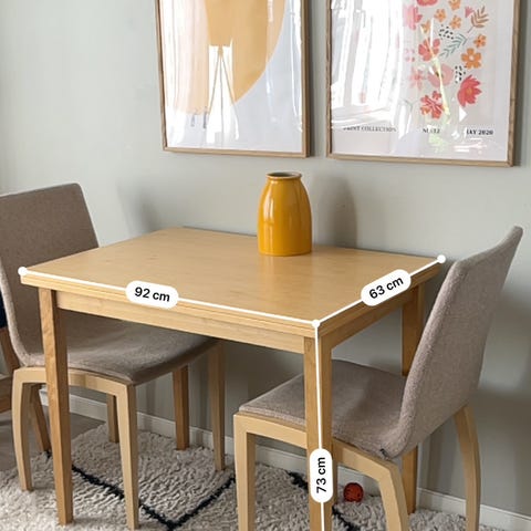 Bordet er stabilt, pent brukt og enkelt å sette sammen eller demontere ved behov.