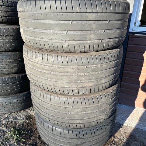 Dekkene er brukt men i grei stand. Perfekt hvis du trenger erstatningsdekk eller ekstra dekk.
