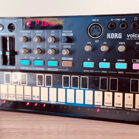 Korg Volca FM synthesizer i bordmodell. Digital FM-synth med innebygd step-sequencer og touchklaviatur på fronten. Enheten har flere kontrollknapper og brytere for redigering av lyder, samt funksjoner som arpeggiator, chorus og ulike sekvensparametere. Kabinettet er i svart med gullfargede tangenter og merkede funksjonsknapper på toppen. Egnet for bruk i hjemmestudio, live-oppsett og som kompakt lydmodul sammen med annet musikkutstyr. Strømforsyning medfølger ikke. Kan sendes, ferdig prutet.