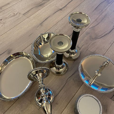 Pent brukt. 3 stearinlys og et brett.