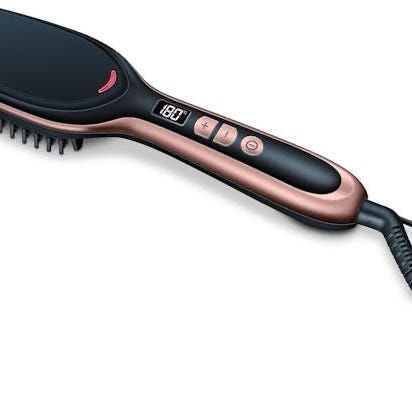 Silvercrest SHGB 50 C2 hårbørste med varme i svart. Elektrisk hårbørste utformet for å rette og glatte hår ved hjelp av oppvarmede børstetagger. Modellen har display og betjeningsknapper på håndtaket for innstilling av temperatur. Leveres med ledning for tilkobling til strømnett. Egnet til styling og utglatting av hår i hverdagsbruk.