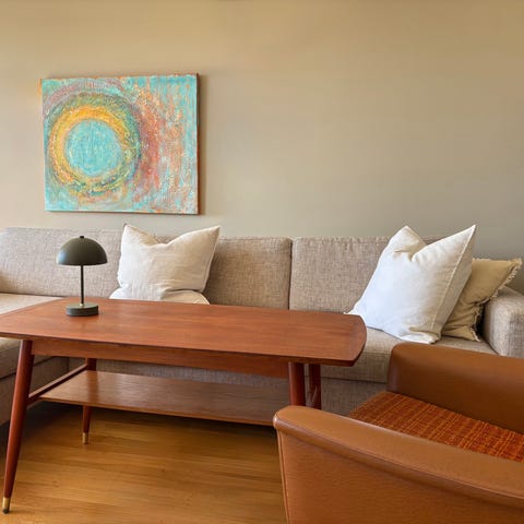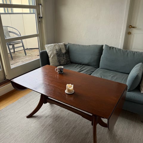 Selger et fint retro salong bord i teak da det dessverre er litt for stort til sofaen, og i stuen vår.