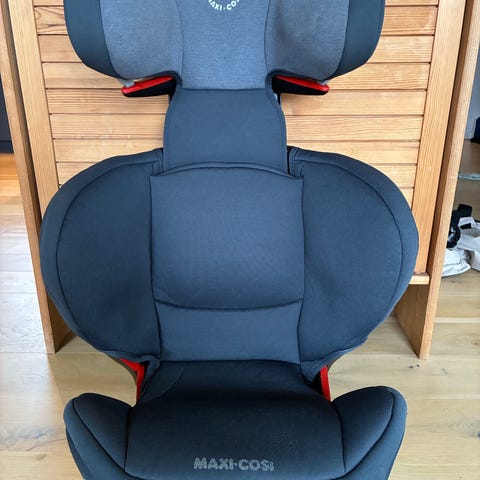 Maxi-Cosi barnesete størrelse 36 i blågrå tekstil. Setet er et beltestol-barnesete for bruk med bilens trepunktsbelte. Det har høy og justerbar rygg med sidebeskyttelse og justerbar hodestøtte. Trekket er polstret for økt sittekomfort. Barnesetet er godkjent etter ECE R44/04 for vektklasse 15–36 kg (gruppe 2/3), som tilsvarer større barn som bruker bilens ordinære sikkerhetsbelte. Passer i biler med standard setebeltefester der universelle barneseter kan monteres (dvs ISO-FIX).