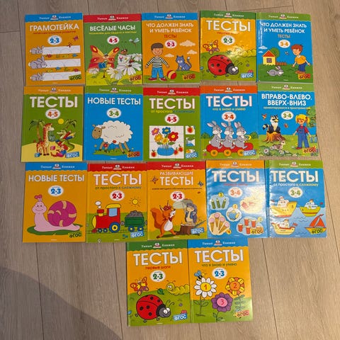 Sett med flere bøker i serien «Min første 1 2 3». Hver bok tar for seg ett tall, for eksempel «1 boken min», «2 boken min», «3 boken min» og «8 boken min». Bøkene er innbundet og har fargerike illustrasjoner som viser ulike figurer, gjenstander og situasjoner knyttet til tallene.
