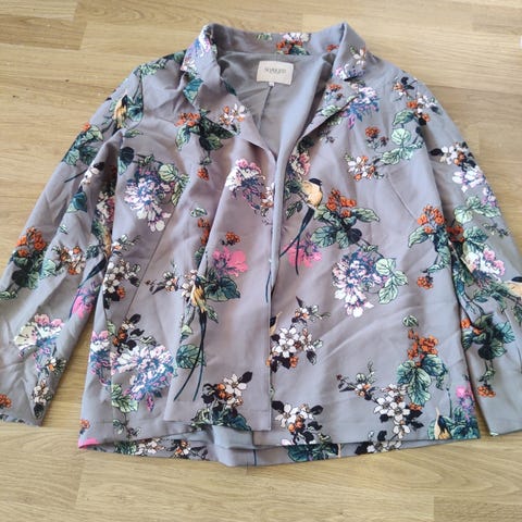 Soaked in Luxury blazer for dame i størrelse XL. Blazeren er blå og laget i polyester. Modellen har klassisk krage, åpen front uten synlig lukking og to frontlommer og den er foret inni. Ermene er lett oppbrettet /rynket til 3/4 lengde for en mer avslappet stil. Passer til bruk over topp, skjorte eller kjole, både til hverdags og mer formelle anledninger.