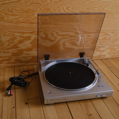 Denon DP-300F platespiller i svart utførelse. Fullautomatisk platespiller med rett tonearm og avtakbart støvlokk. Modellen har innebygde kontroller på toppanel for start, stopp og hastighetsvalg. Egnet for avspilling av vinylplater i hjemmemiljø. Tilkobles forsterker eller anlegg via analoge lydkabler på baksiden.