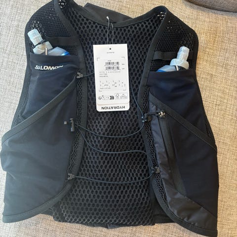 Nesten ubrukt Salomon Skin Pro2 15 liter løpevest. Isolasjonspose til drikkeblære følger med. Selges fordi jeg ikke trenger en vest med så stor kapasitet. Denne kan justeres til alle størrelser.