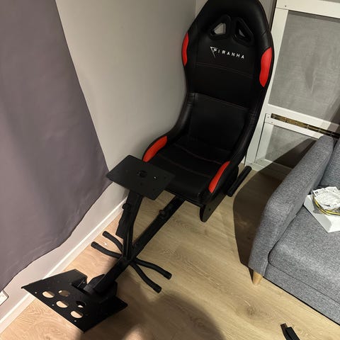Setet har rørramme i metall og bøttesete-utforming med justerbare stropper i sidene. Integrert festeplate for ratt foran setet og for pedaler på forlengelsen i front. Setet kan foldes sammen for enklere lagring når det ikke er i bruk. Egnet for bruk med ulike ratt- og pedalsett til spillkonsoll eller PC.