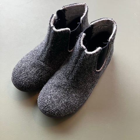 Superfit tøfler for barn i størrelse 29. Tøflene er i grå filt med oransje reve-motiv på oversiden. Yttersålen er i gummi med mønster for bedre grep. Modellen er unisex og egner seg som innetøfler til hverdagsbruk i barnehage eller hjemme.