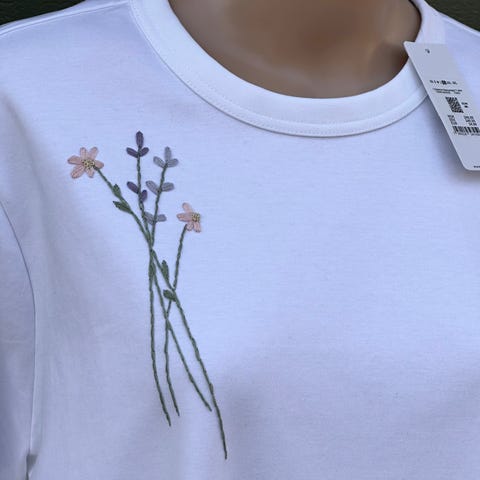 Basic,rosa longsleeve fra Bik Bok i 100% økologisk bomull ,håndbrodert av meg med motiv av peon (korsstingteknikk) 😊 Genseren er ny.Str. Medium. Rund hals,lav skuldersøm, rett skåret kant nederst,lett oversized modell.Normal lengde.Jeg har skyllet genseren i vann etter brodering for å løse opp det vannløselige mønsterpapiret jeg bruker som støtte til stoffet. Brodergarnet jeg bruker er fargeekte og tåler fint å vaskes i maskin. Utstillingsdukkens mål tilsvarer str.XS. Se gjerne de andre annonsene mine med flere håndbroderte klær ,vesker,bilder,hodeplagg,vevede veggetepper mm😊