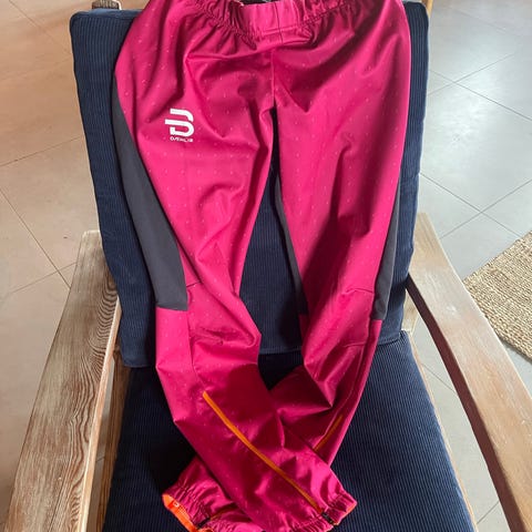 Björn Dæhlie treningsdress for dame i størrelse M. Sett med jakke og bukse i lette materialer egnet til ulike typer trening og fritidsbruk. Fargekombinasjon i beige, hvitt, svart og oransje. Jakken har hel glidelås foran og høyt halsparti. Buksen er hellang med elastisk linning. Passer til dame som ønsker et funksjonelt treningssett i middels størrelse.