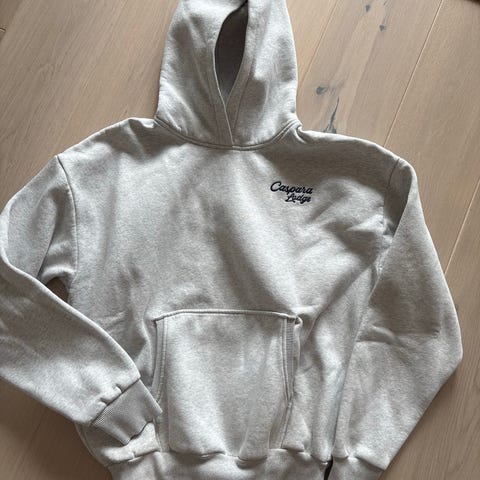 Caspara Sports Club hettegenser for dame i størrelse XS. Genseren er grå og laget i bomull. Den har hette, kengurulomme foran og ribbestrikkede kanter nederst og ved ermene. Trykk med «Caspara Sports Club» på brystet i kontrastfarge. Passer til hverdagsbruk og fritidsaktiviteter.