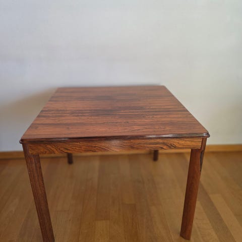Salongbordet er i Rosentre/Palisander å i veldig fin stand. Tegnet av Arne Halvorsen å produsert hos
