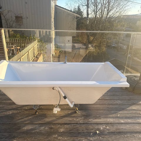 Helt nytt badekar med sprekker i det ene hjørnet gis bort mot henting.