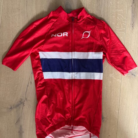 Lite brukt Norge-tempodrakt i str. small, med lomme til startnr. på ryggen.