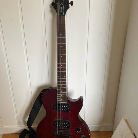 Epiphone Special II elektrisk gitar i svart finish. Modellen har solid kropp med dobbel humbucker-pickup-konfigurasjon, volum- og tonekontroll samt 3-veis pickup-bryter. Gitaren har bolt-on hals med gripebrett i tre med båndmarkeringer.