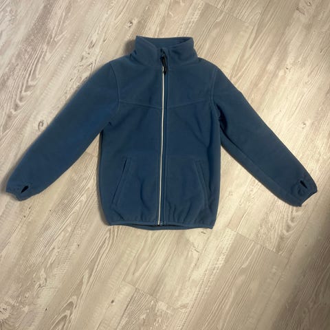 Polarn O. Pyret fleecejakke for barn i størrelse 104 i fargen blå. Den beste vindfleecen som holder barnet varmt. Kun brukt av ett barn. Ikke brukt i barnehage.