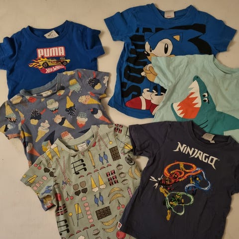 6 kule og fine gensere som er hele og uten flekker, og ikke slitt. Det er tre tynne (en av dem helt hvit)og tre college. Den med brannbiler og sykebil er en tynn college. Den er også minst, 122, de andre er 122/128. Selges som pakke for 300 eller enkeltvis for 100,- pr college eller 50,- pr tynn genser. Ulike merker, som bl.a H&M, Zara og Lindex