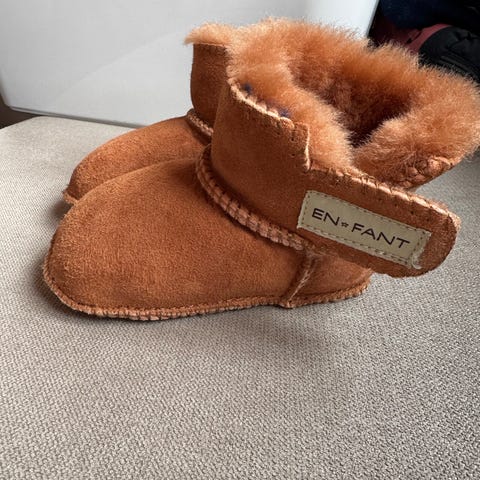 Nydelige og varme babystøvler fra En Fant selges. Mykt semsket skinn med deilig ullfôr som holder små føtter varme.