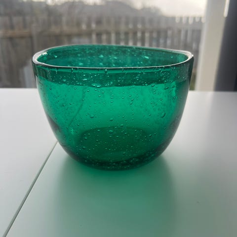 Flott vintage bolle i grønt glass selges.