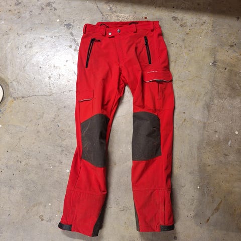 2 små rifter som er lappet. Ikke kuttet eller revet i kjedestopper i bukse