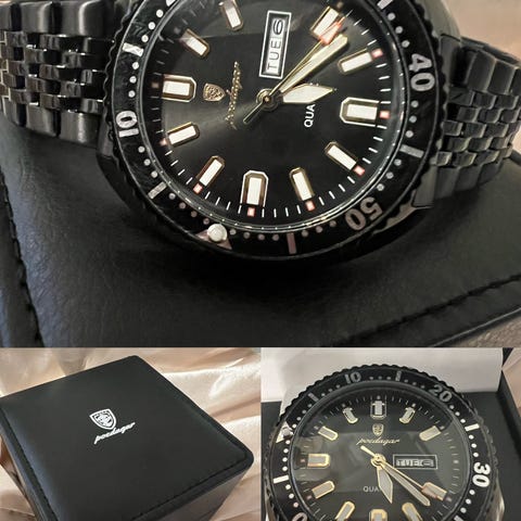 Poedagar herreklokke kronograf grønn urskive metalllenke
