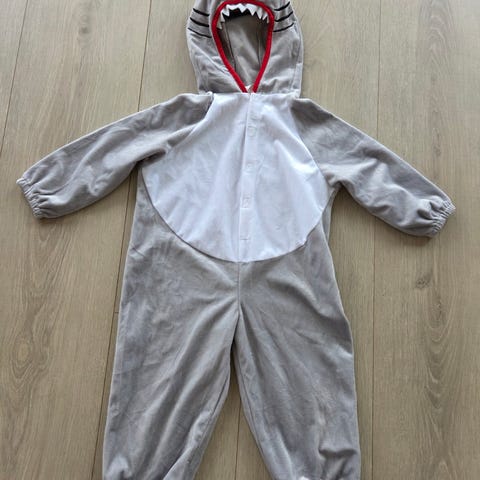 Karnevalskostyme for barn ca 2 år, str 92. Grå elefant, med hvitt på brystet, rosa ører, snabel og støt-tenner.